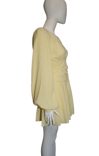 Yellow Mini Dress, Balloon Sleeves and Ruched Waist