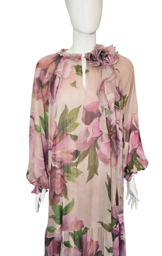 Floral Maxi Dress with Flower Detail – Long Sleeve