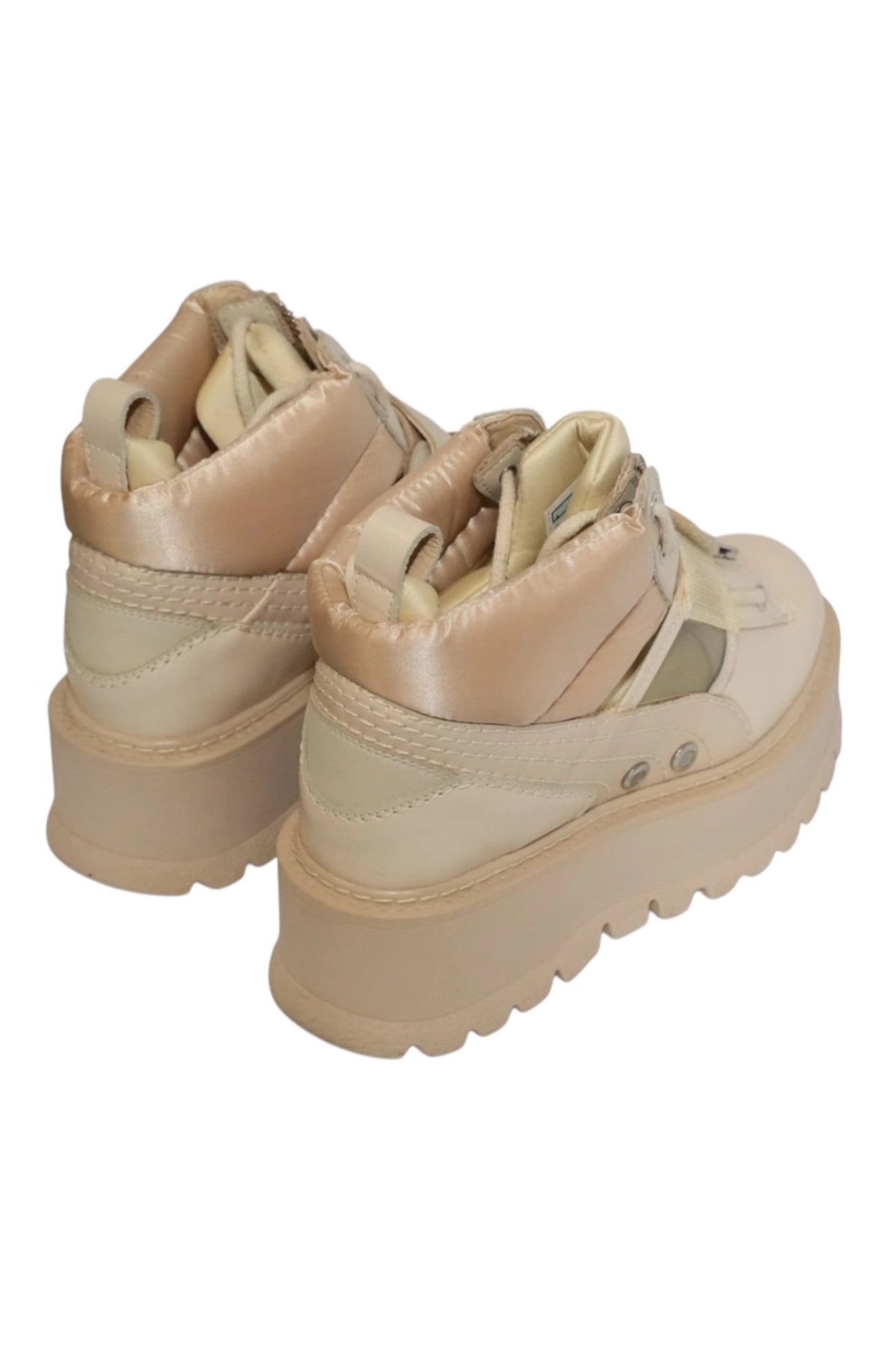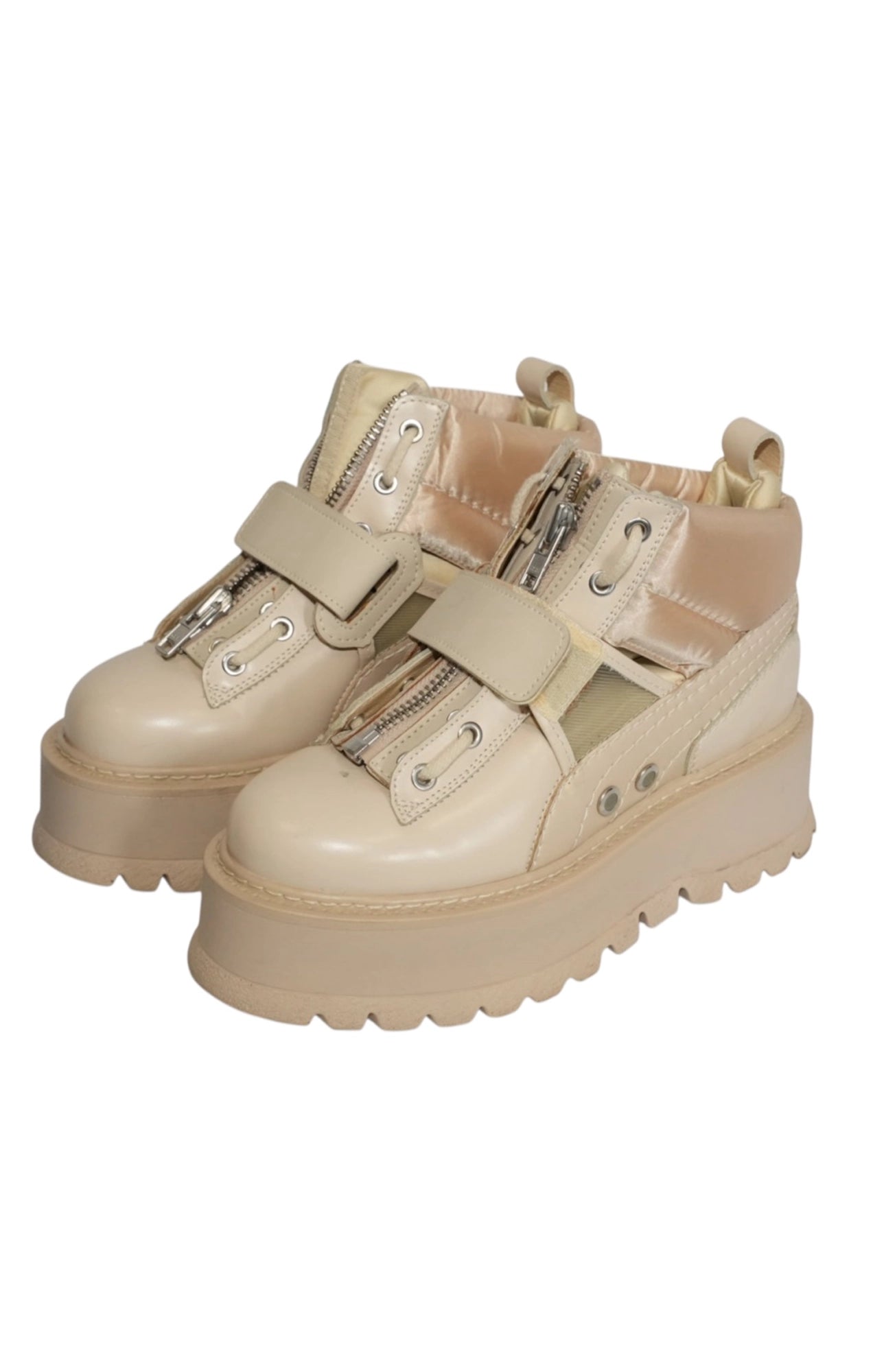 Adoptă un stil streetwear îndrăzneț cu aceste ghete cu platformă Puma x Fenty, create în colaborare cu linia de modă iconică a Rihannei. Realizate într-o nuanță versatilă de bej, aceste ghete îmbină energia sportivă cu o atitudine urban-chic.