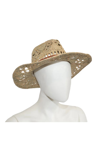 Cowboy din Paie Împletite cu Bandă din Piele cu Ținte