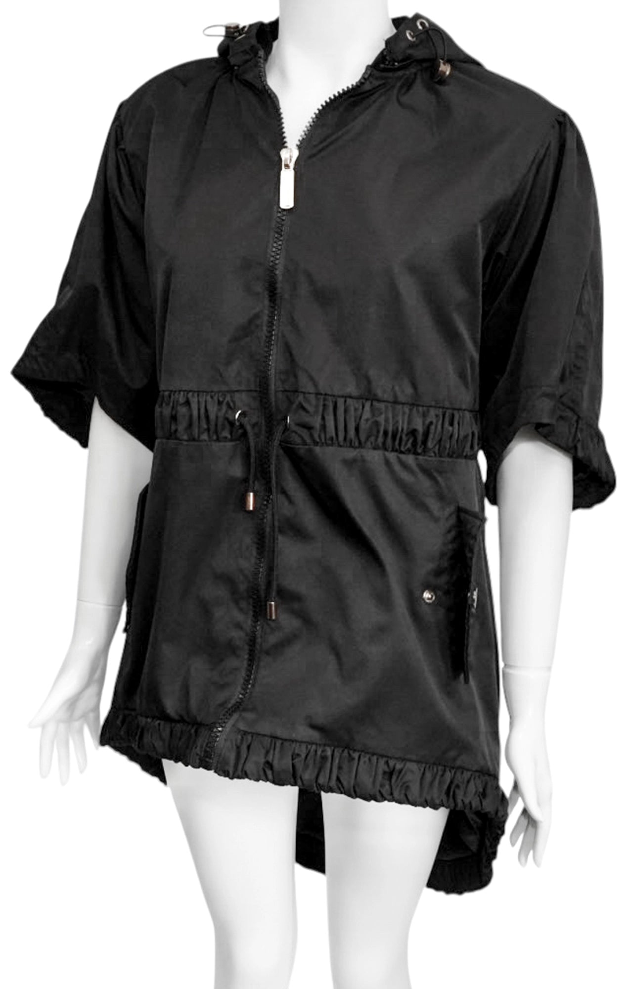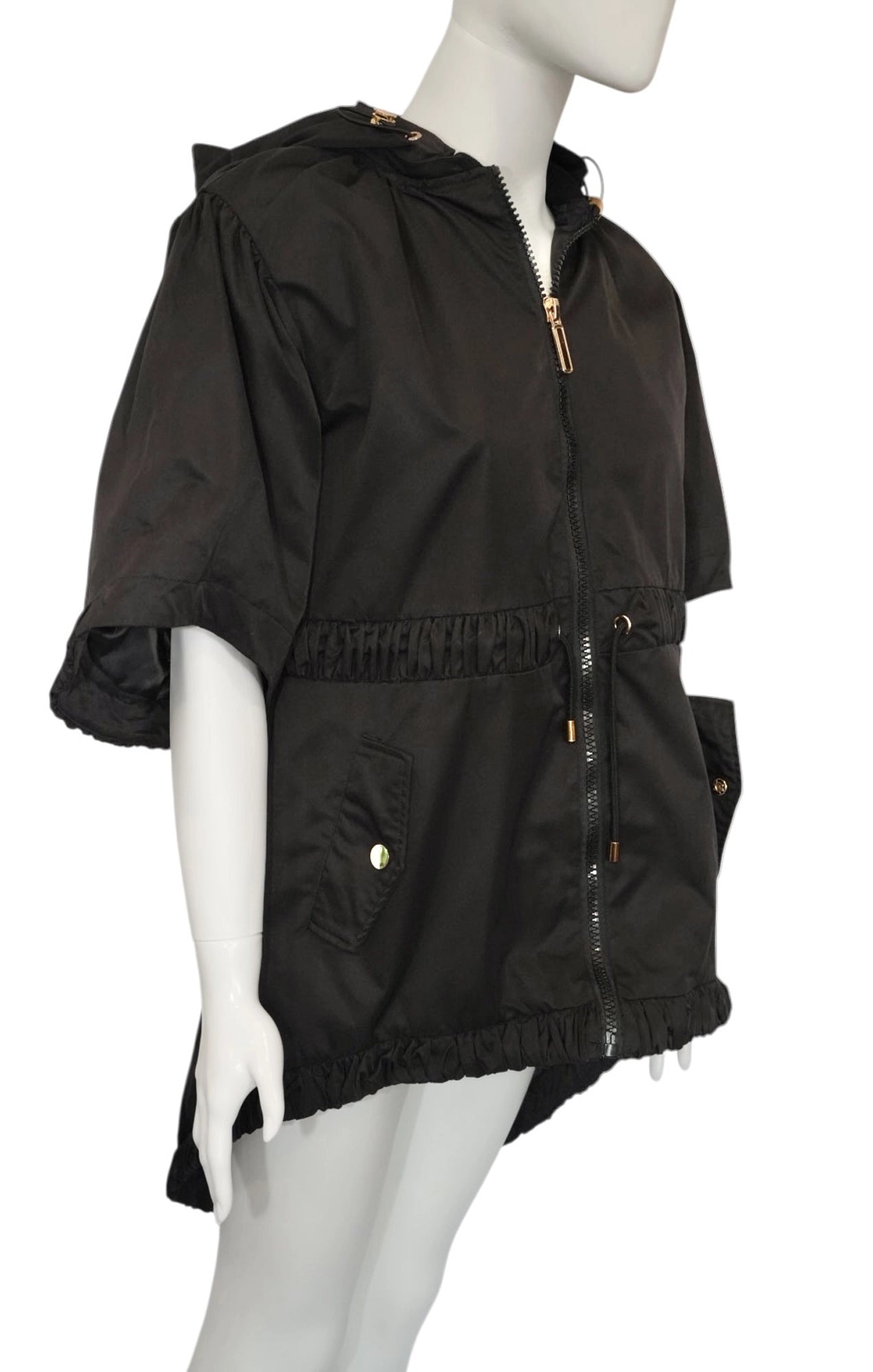 • Design: Jachetă cu mâneci scurte, glugă și detalii cu volane