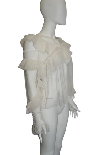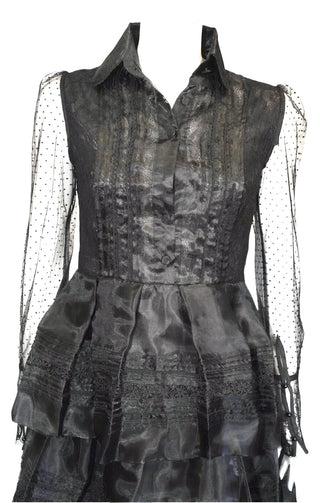 Black Ruffled Mini Dress with Sheer Sleeves