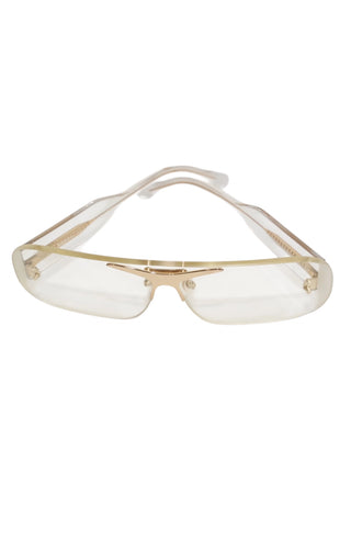 Ochelari de soare pătrați oversized cu ramă neagră și detalii aurii, lentile degrade