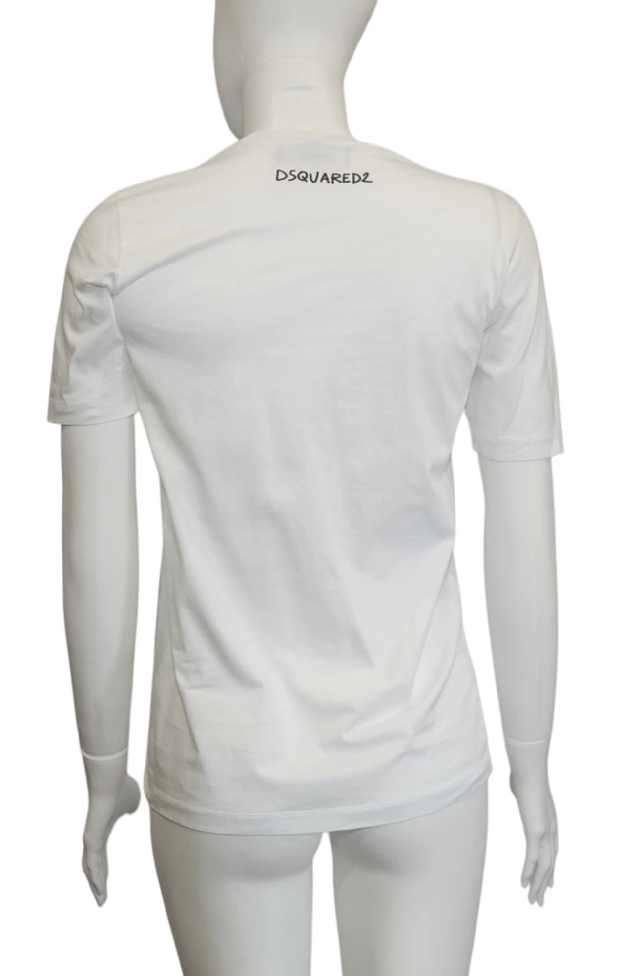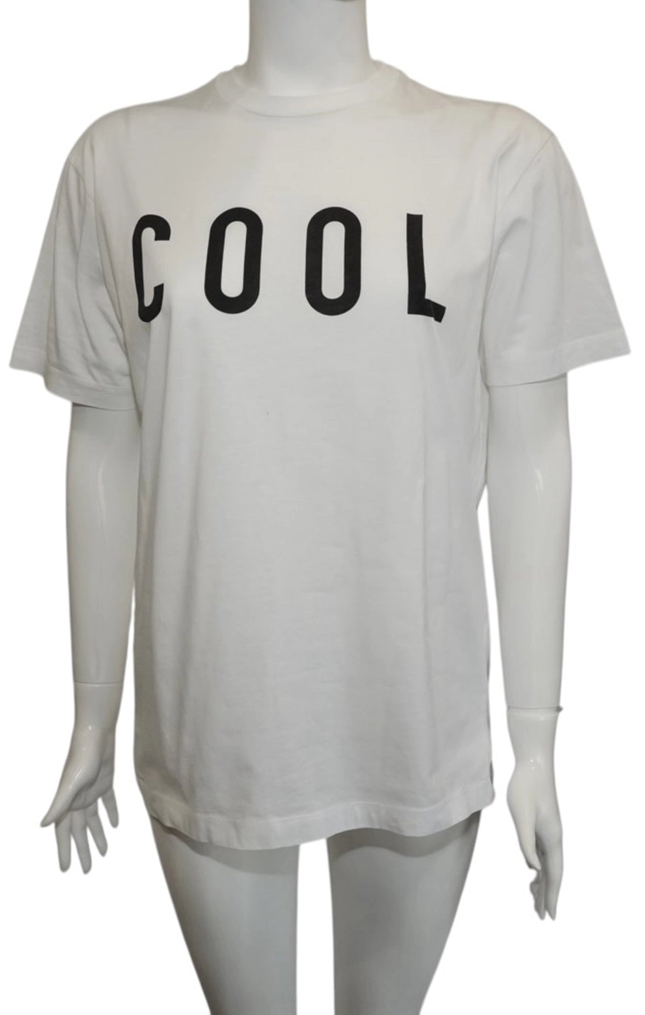 Casual and bold, this Dsquared2 t-shirt in size XS is crafted from soft cotton for everyday comfort. Featuring a classic crew neckline and short sleeves, it stands out with the large black “COOL” lettering printed across the chest. A versatile piece that pairs effortlessly with jeans, skirts, or layered looks, adding a playful designer touch to your outfit.