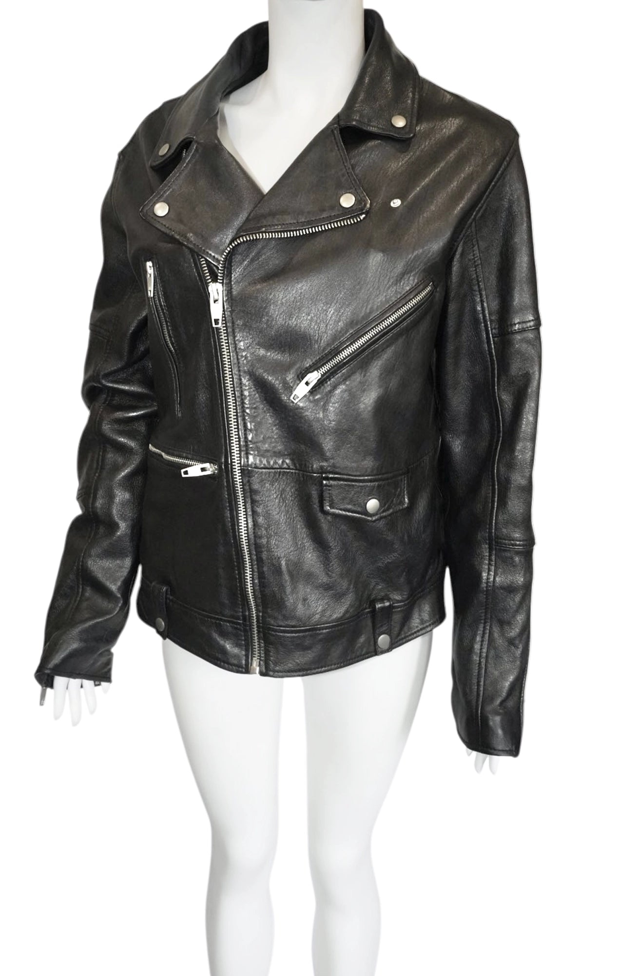 - Stil: Jachetă biker atemporală cu accente contemporane