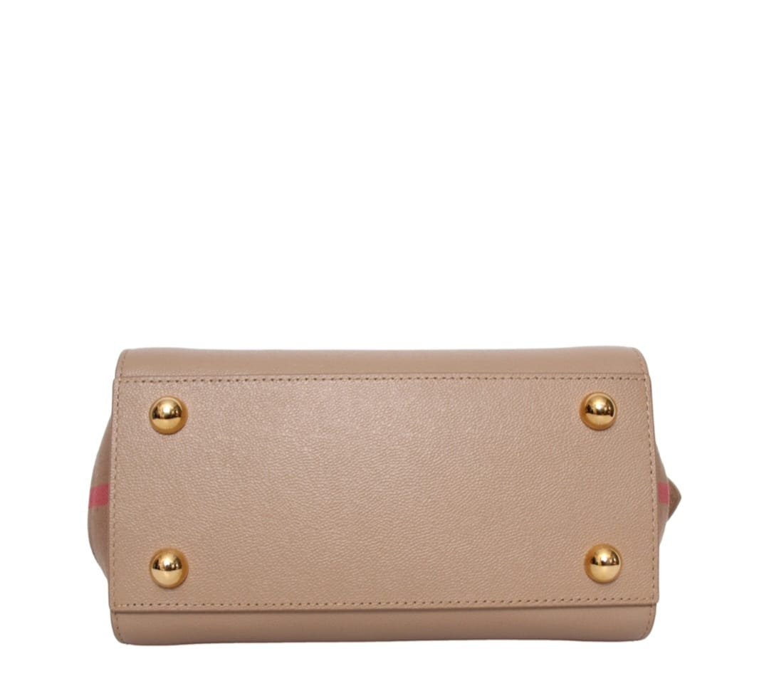 Detalii Hardware: Logo-ul "Burberry London England" este discret ștanțat cu auriu pe partea frontală. Accesoriile metalice, inclusiv picioarele protectoare de la bază și elementele de prindere a mânerelor, sunt finisate în tonuri aurii, adăugând o notă de eleganță.